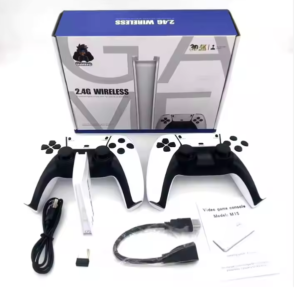 The M15 also includes dual 2.4G wireless controllers, giving you and a friend the freedom to play without cables. Multi-language and multi-user support make it ideal for families and retro gaming enthusiasts worldwide.