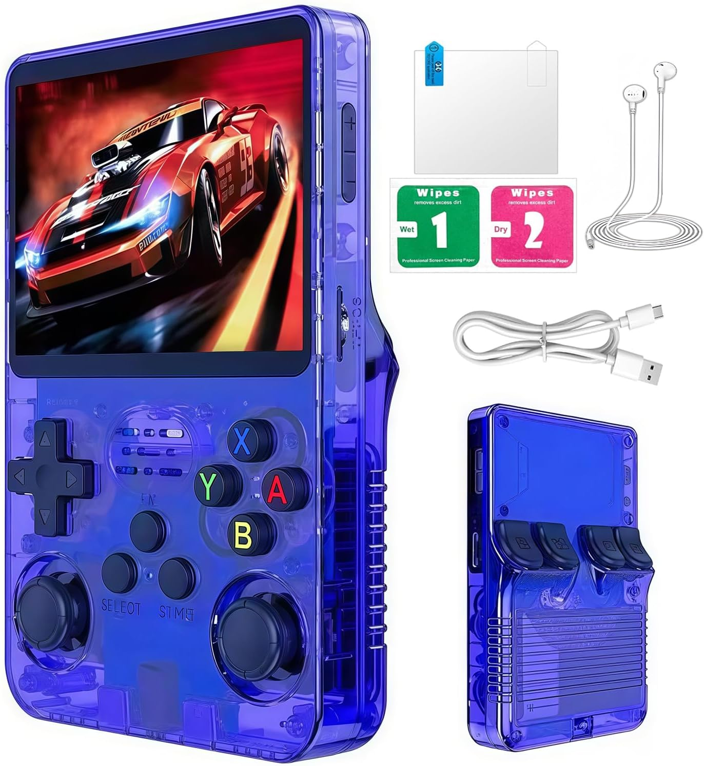Play 15,000+ classic games from NES, SNES, Game Boy, PS1, and more with the R36S Retro Game Console. Features a 3.5″ IPS screen, RK3326 CPU, Wi-Fi support, and customizable firmware. Comes with a 128GB card preloaded with games. Portable, powerful, and perfect for retro gaming on the go
