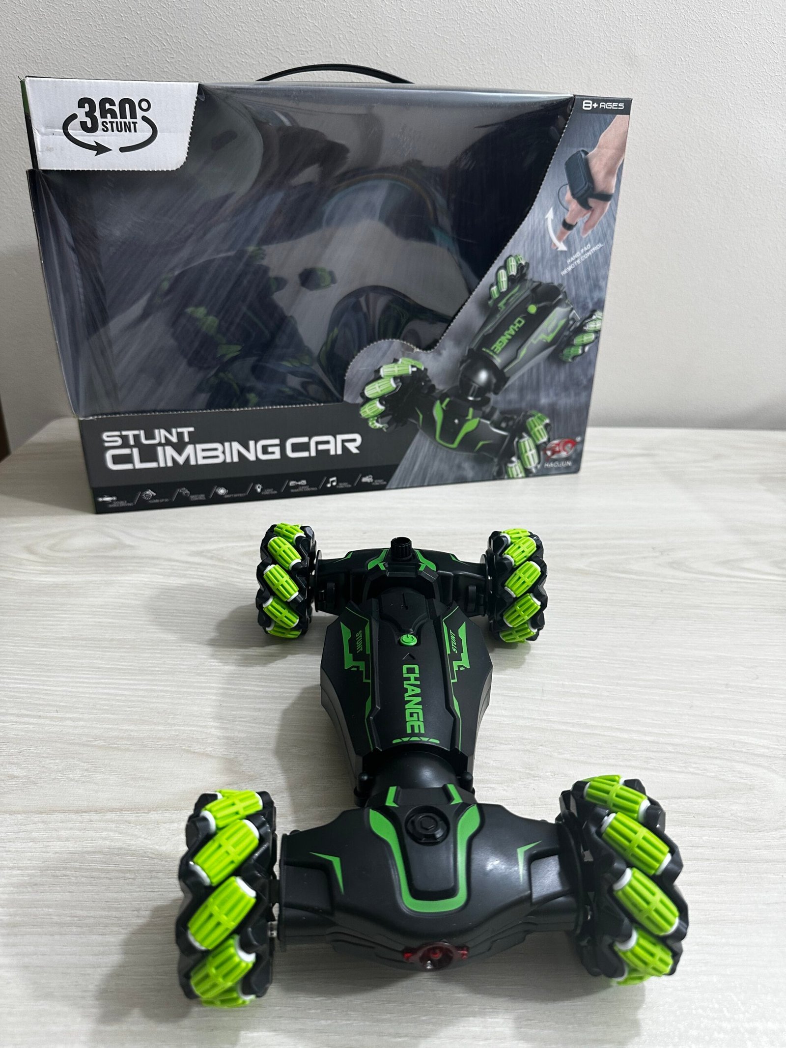 By wearing a gravity-sensing watch, children can control the car by tilting their wrists. It feels futuristic and adds a fun twist to regular RC driving.